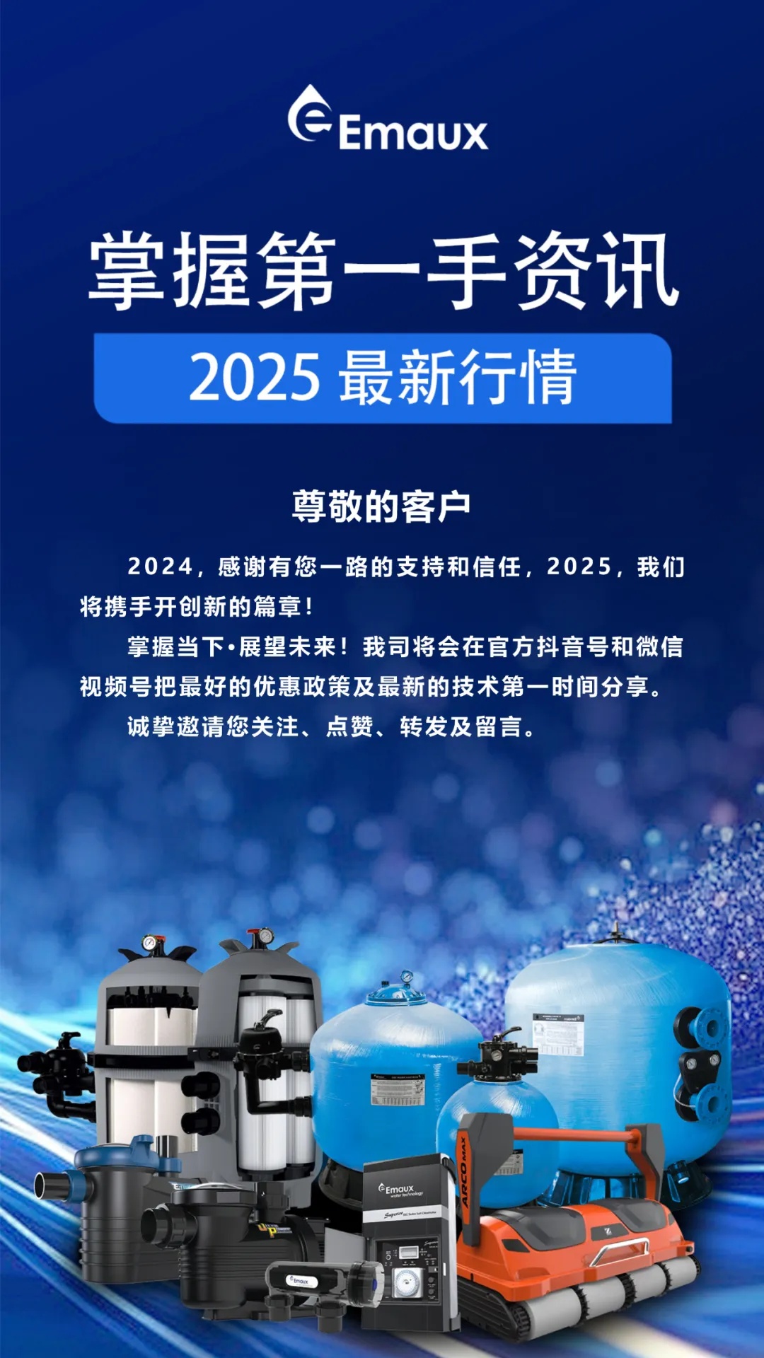 意萬仕集團(tuán)(Emaux Group),國際水處理行業(yè)領(lǐng)軍企業(yè)之一,我們?cè)谟斡境匦袠I(yè)擁有40多年豐富的知識(shí),是一家用心為您提供泳池設(shè)備解決方案的專業(yè)生產(chǎn)商, 為全球十大泳池設(shè)備供貨商之一。 集團(tuán)擁有超過10萬平方米的生產(chǎn)基地,集研發(fā)、生產(chǎn)、質(zhì)量控制、培訓(xùn), 銷售和售后支持于一體,確保我們的工廠能夠?yàn)榭蛻籼峁┒鄻踊蛣?chuàng)新的泳池和各類水處理設(shè)備,滿足高標(biāo)準(zhǔn)的質(zhì)量,性能和設(shè)計(jì).